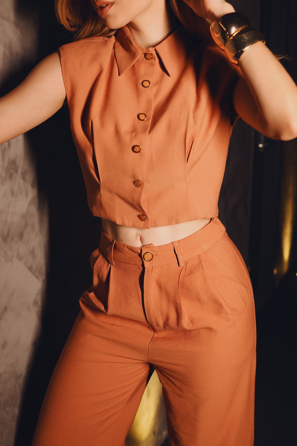 Camisa com Botões com aro dourado. Possui gola. Detalhe de pregas na frente. As cores podem sofrer pequenas variações. Tx de encolhimento aceitável por lei: de 5 a 10% do tam. da peça (se lavado corretamente). Calça com Bolsos faca. Pregas na frente. Detalhe de lapelas com botão no cós das costas. Possui passantes. Forro somente na cor creme. As cores podem sofrer pequenas variações. Tx de encolhimento aceitável por lei: de 5 a 10% do tam. da peça (se lavado corretamente).
